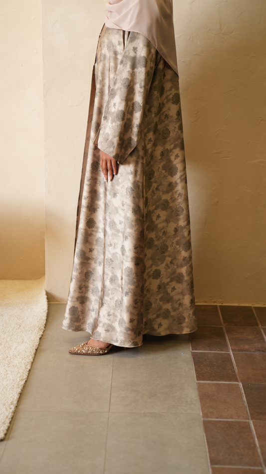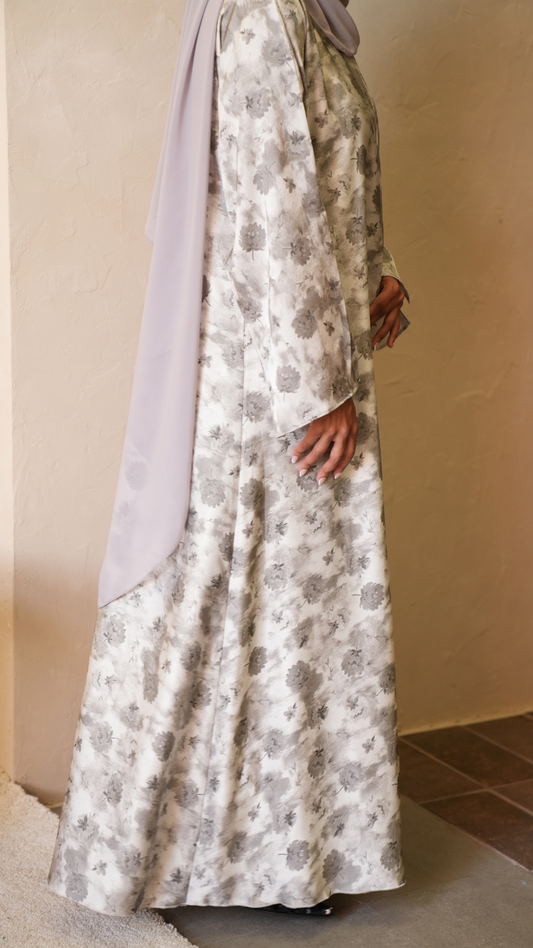 Satin Floral Printed Abaya - Subtle GreyRegular price $101.00 USDRegular priceUnit price / per$101.00 USDSale price $101.00 USD