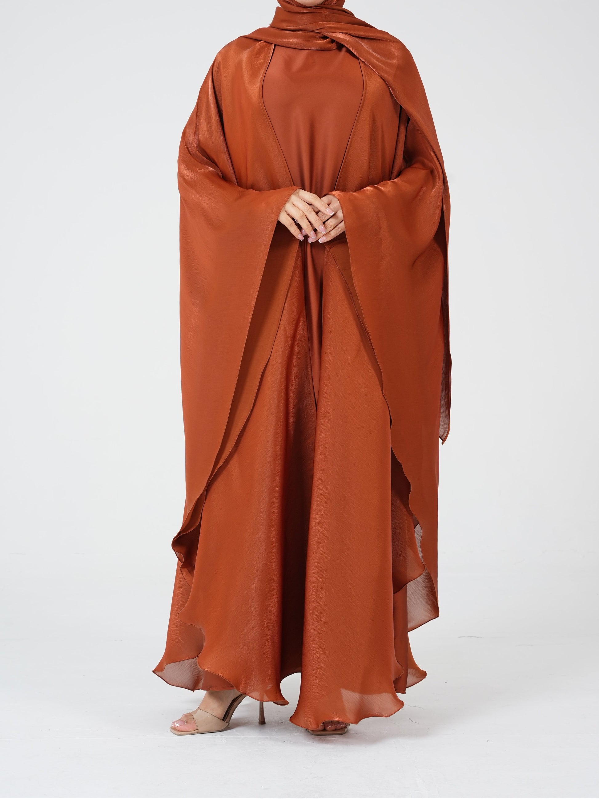 Elevate your occasionwear with our iconic Eid Abaya. Designed for both refinement and comfort, the lightweight fabric drapes beautifully, with a silhouette designed to flow and flatter. The open kaftan adds a touch of sophistication, making it perfect for special occasions.